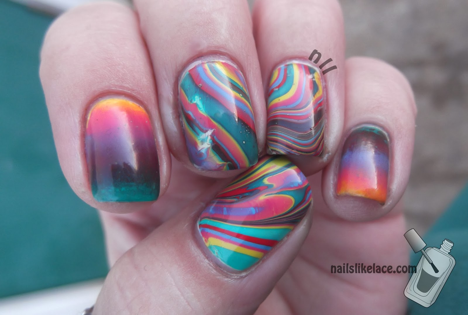 There are three types of nail art I haven't done for a while: gradient, water marble, and rainbow nails. So of course I had to remedy that all in one mani!
